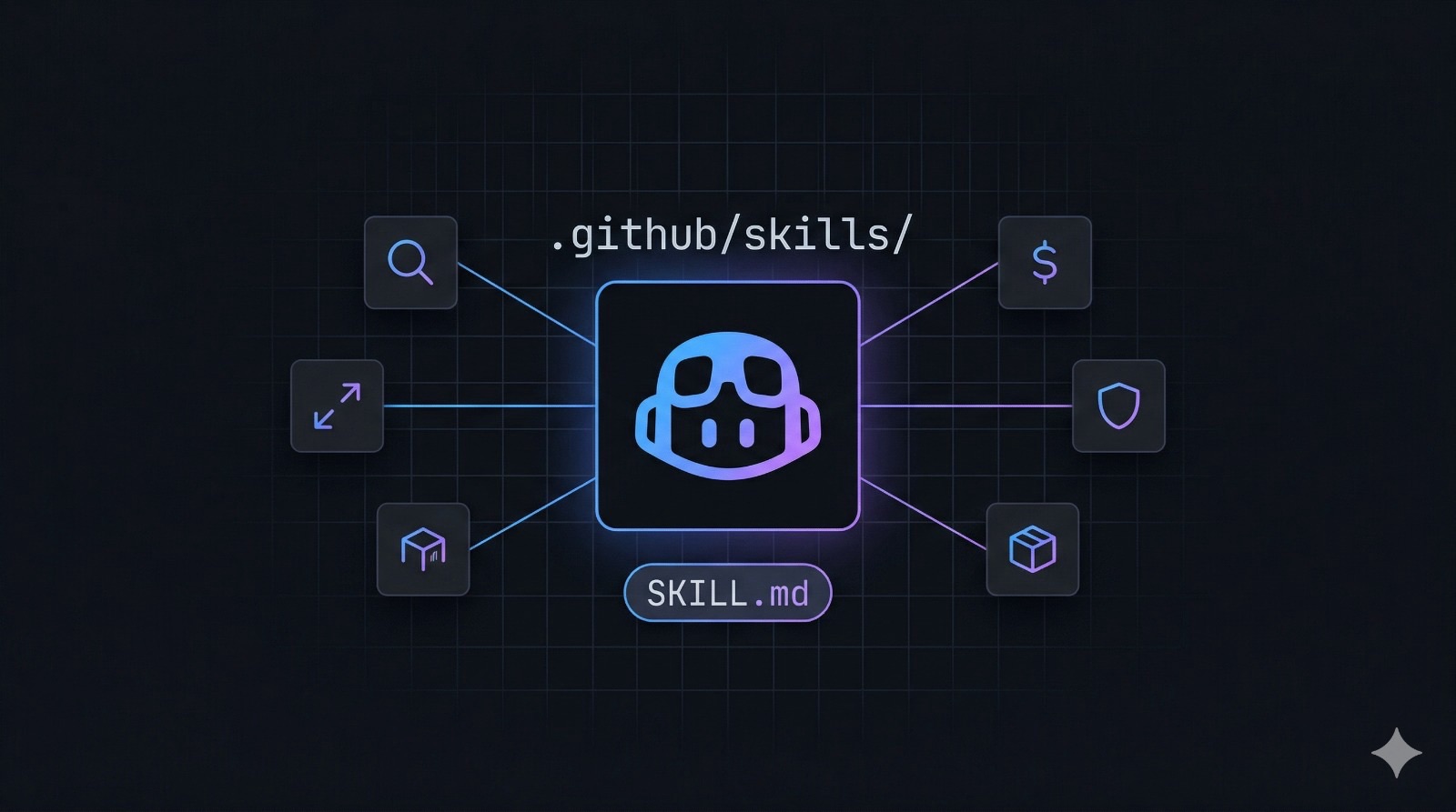 The key distinction from agents: agents are personas you *select*. Skills are knowledge packages that Copilot *discovers*. When you assign an issue to the coding agent with the implementation agent selected, that’s an explicit choice. When you ask “how much does this architecture cost?” and the cost estimator skill loads, that’s automatic.